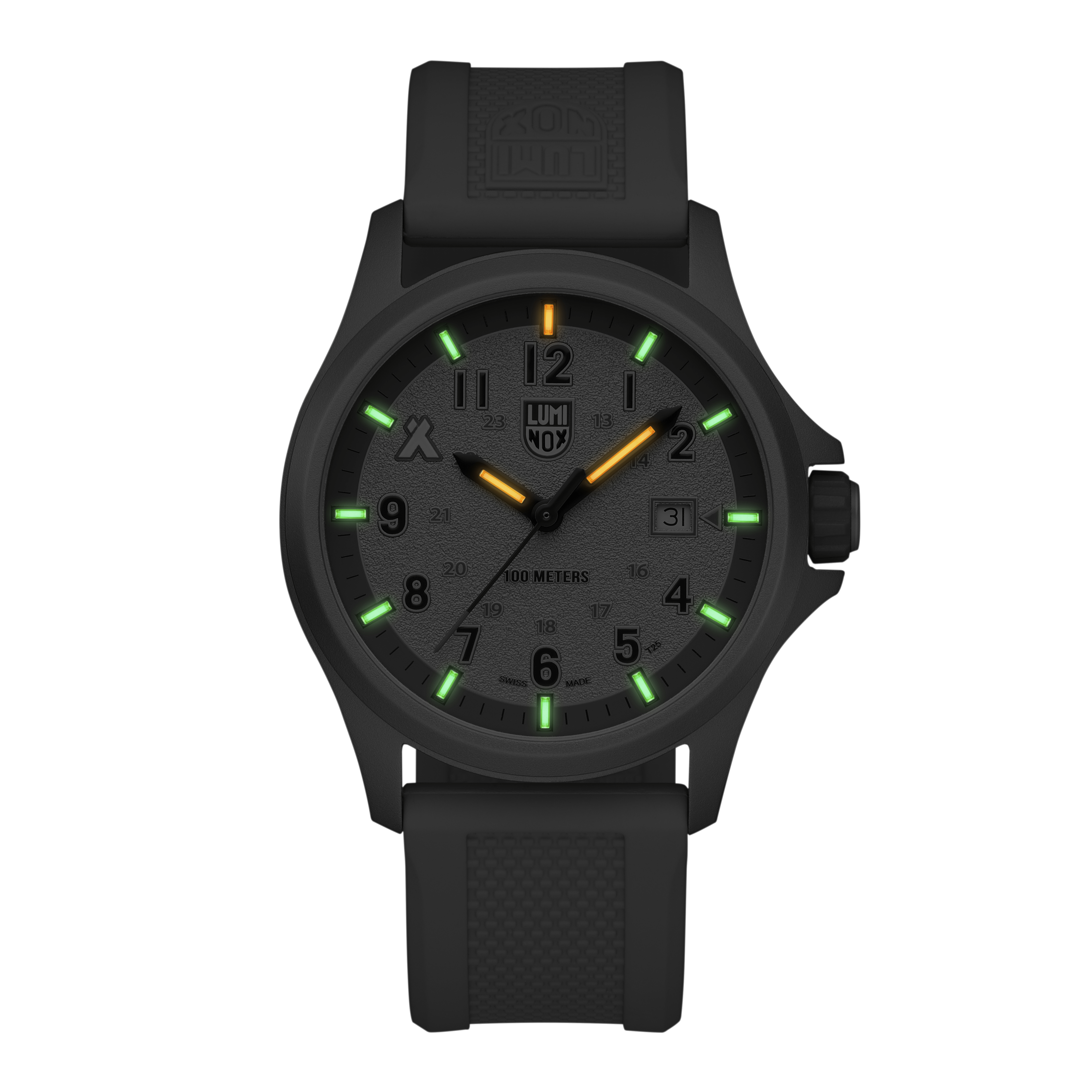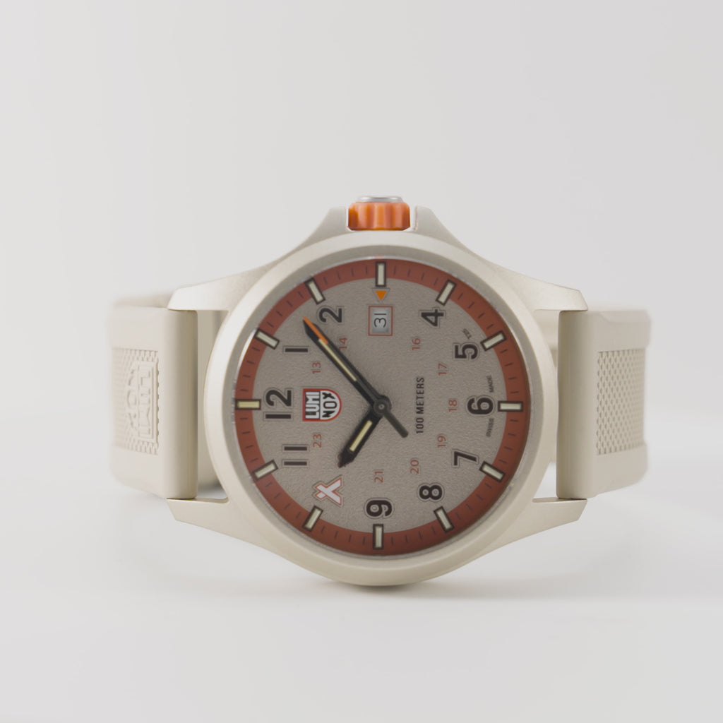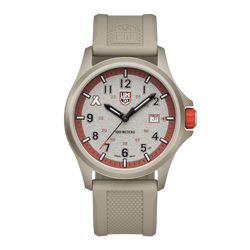Crafted for long expeditions and inspired by survival legend Bear Grylls, the XB.3717 watch is your ultimate field companion. The sleek 43mm case is made of ultra-lightweight ALUMI-NOX, an aerospace-grade aluminum which offers exceptional strength, anti-corrosion protection, and anti-magnetic precision. The sand-blasted texture of the sand coloured dial boosts readability while a date window offers added functionality. Swiss Made and water-resistant to 100 meters, the watch features a scratch-resistant sapphire crystal, Swiss Quartz movement and the signature Bear Grylls design elements including the orange crown, his iconic logo at 10 o’clock and his Never Give Up mantra engraved on the case back. The Luminox Light Technology with 14 light tubes ensures constant visibility day or night making this a perfect watch for those who love to explore the outdoors.