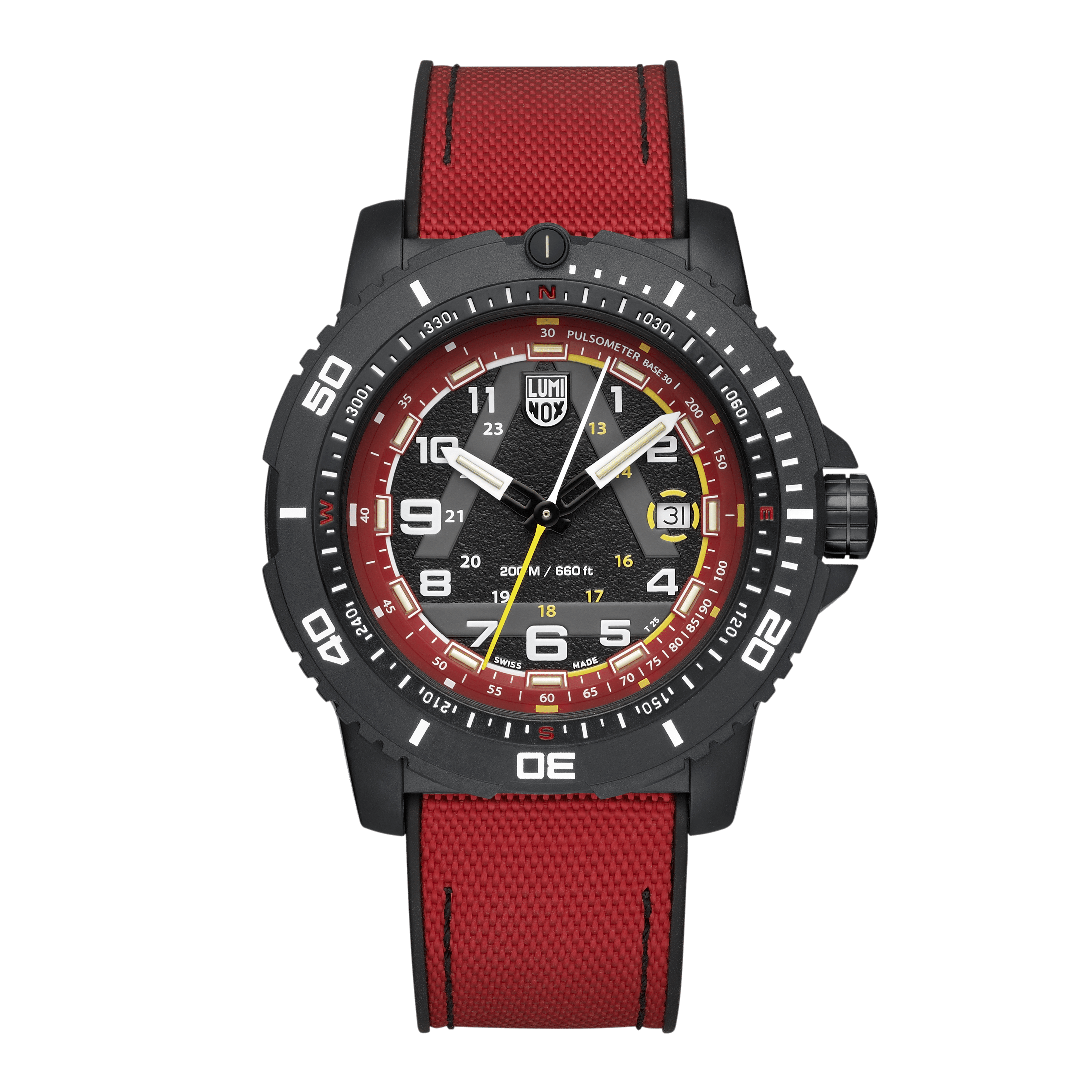This Limited-Edition ICE-SAR 1080 watch is inspired by Iceland’s toughest rescue missions and built for those who face the world’s most extreme conditions. The striking special edition with a fire-red strap and outer dial ring is limited to just 874 pieces worldwide to commemorate the year 874 AD, when the first settlers arrived in Iceland. Featuring a 45mm CARBONOX™ case, this Swiss-Made tactical watch is ultra-lightweight yet exceptionally strong. Its textured black dial and sapphire crystal with anti-reflective coating ensure readability in any environment. Fifteen Luminox Light Technology (LLT) tubes provide constant visibility for up to 25 years – vital in complete darkness. Powered by a Swiss Quartz RONDA movement, water resistant to 200 metres, and equipped with a pulsometer scale, this durable timepiece delivers precision under pressure. The rubber strap with textile finish completes a rugged design engineered for resilience, reliability, and adventure — Always Visible, always ready.
